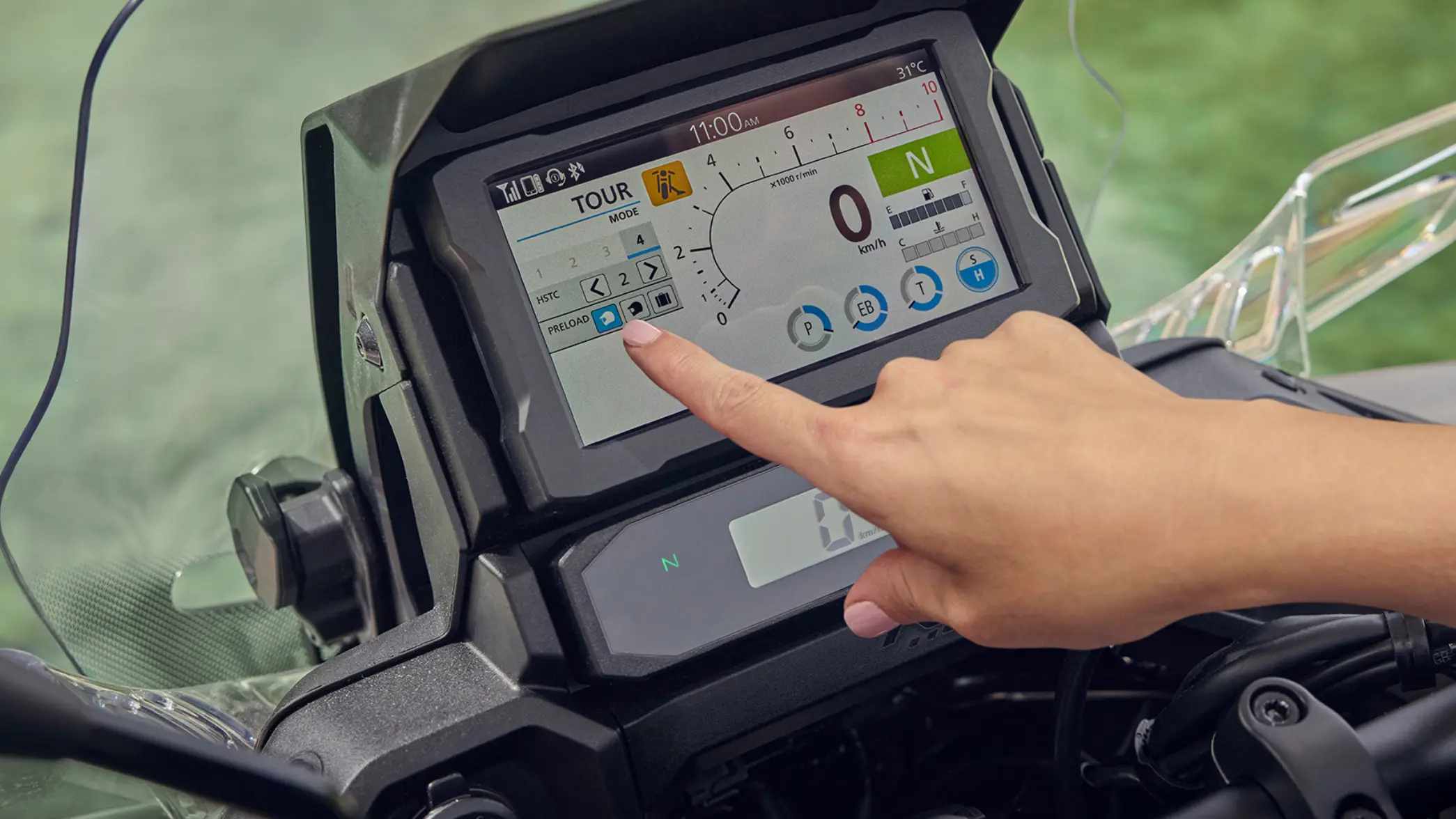 Η ανάρτηση Showa Electronically Equipped Ride Adjustment (Showa-EERA™) είναι πλέον μια επιλογή. Με ρυθμίσεις που έχουν αναπτυχθεί ειδικά για το NT1100, το σύστημα παρέχει αμέσως βέλτιστη δύναμη απόσβεσης σε σχέση με την ταχύτητα διαδρομής, τη δυναμική οδήγησης και τη στάση της μοτοσυκλέτας όπως ανιχνεύεται από το IMU και άλλους αισθητήρες και προσαρμόζεται σε πραγματικό χρόνο. Κατά τη διάρκεια του φρεναρίσματος, η πίεση ελέγχεται για τη διατήρηση της σταθερότητας και η παρεχόμενη διαδρομή είναι ασύγκριτη με μια συμβατική ρύθμιση. Και το Showa-EERA™ συνδέεται αυτόματα με την επιλογή τρόπου οδήγησης: Το TOUR προσφέρει σταθερή απόσβεση για υψηλότερες ταχύτητες, το URBAN προσφέρει ισορροπία στη μέση για άνεση και το RAIN χρησιμοποιεί χαμηλότερη δύναμη απόσβεσης, εξομάλυνση απόκρισης και αίσθηση. Η προσαρμογή είναι δυνατή και η προφόρτιση του πίσω ελατηρίου μπορεί να ρυθμιστεί ενώ βρίσκεστε εν κινήσει.
